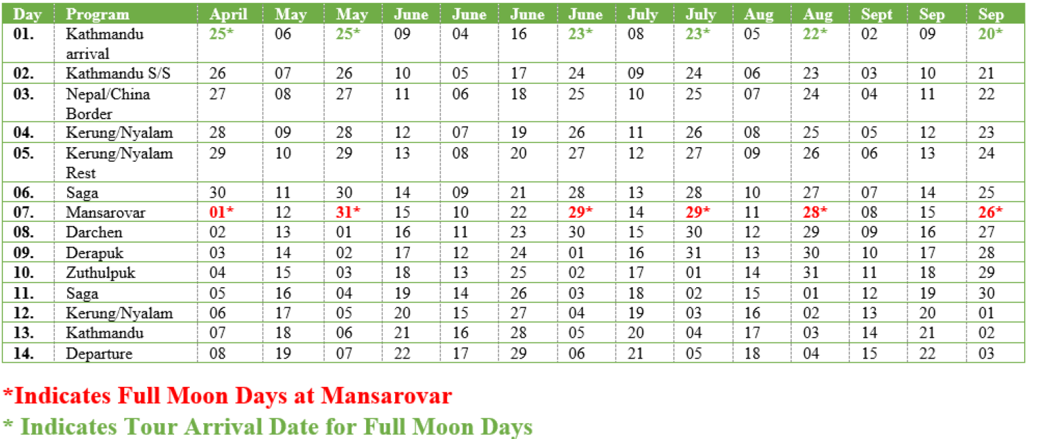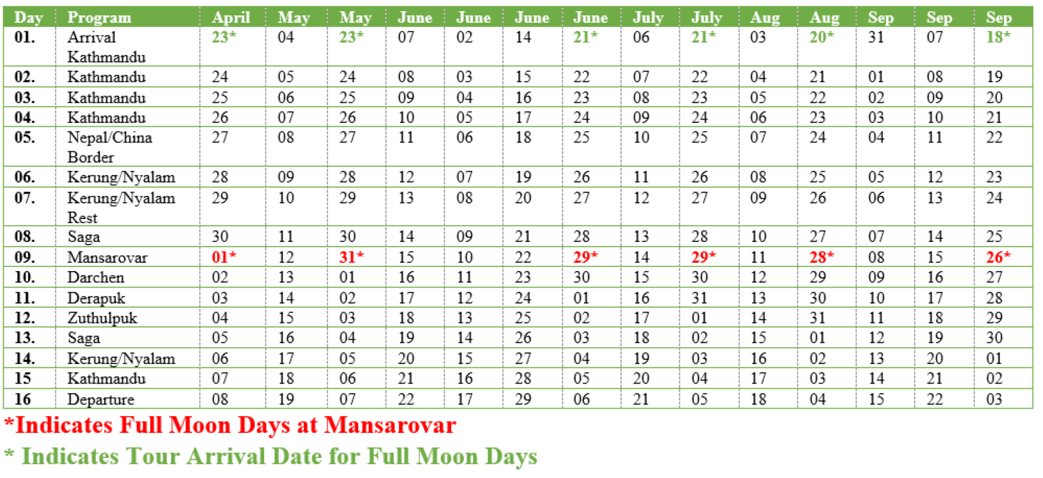 Full moon departures: Considered a high-energy time to do the Kailash Kora and Mansarovar dip.